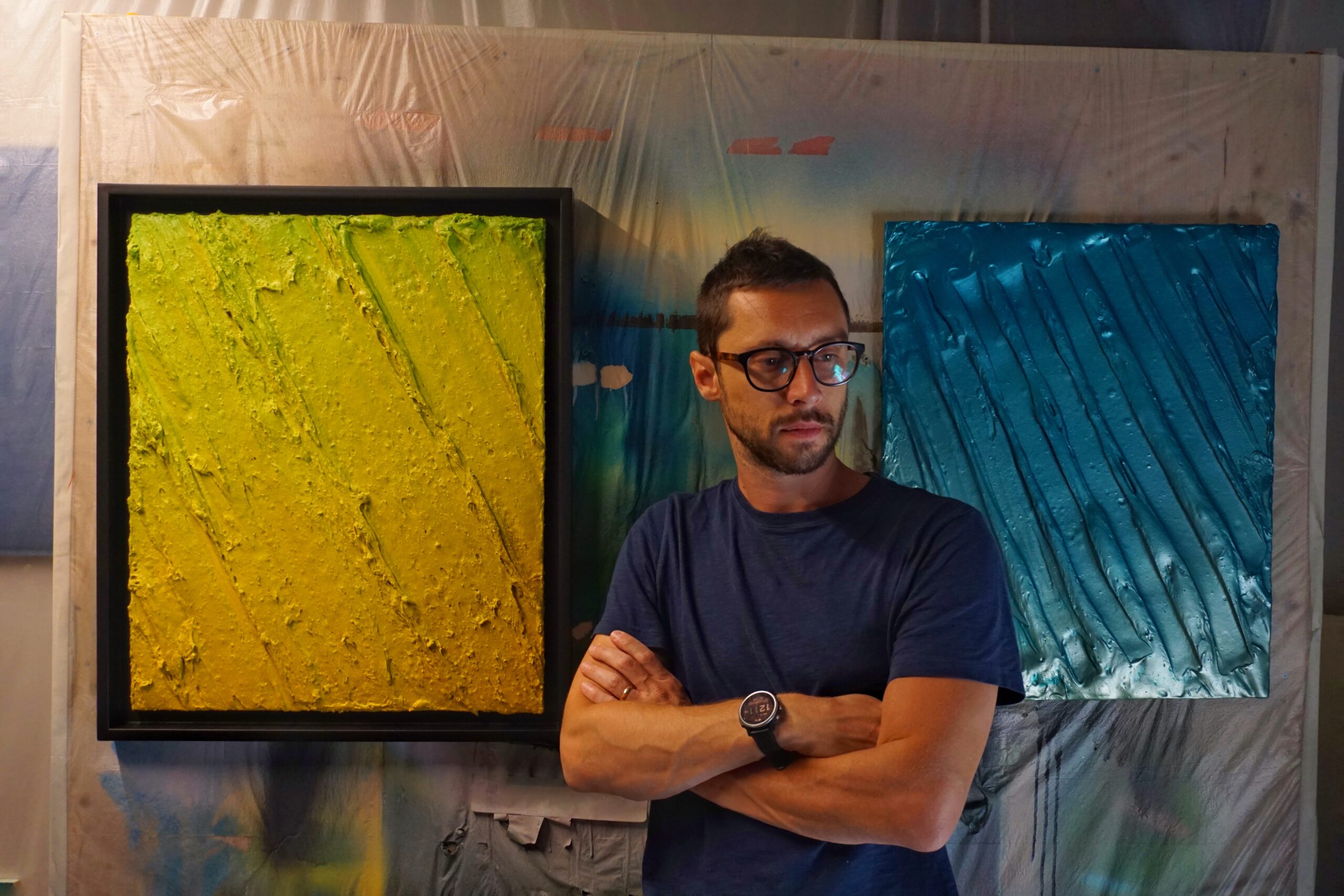 The surfaces I paint on are recorders of situations, gestures, and emotions. They observe the collision of various elements that give the works a material and engaging character.