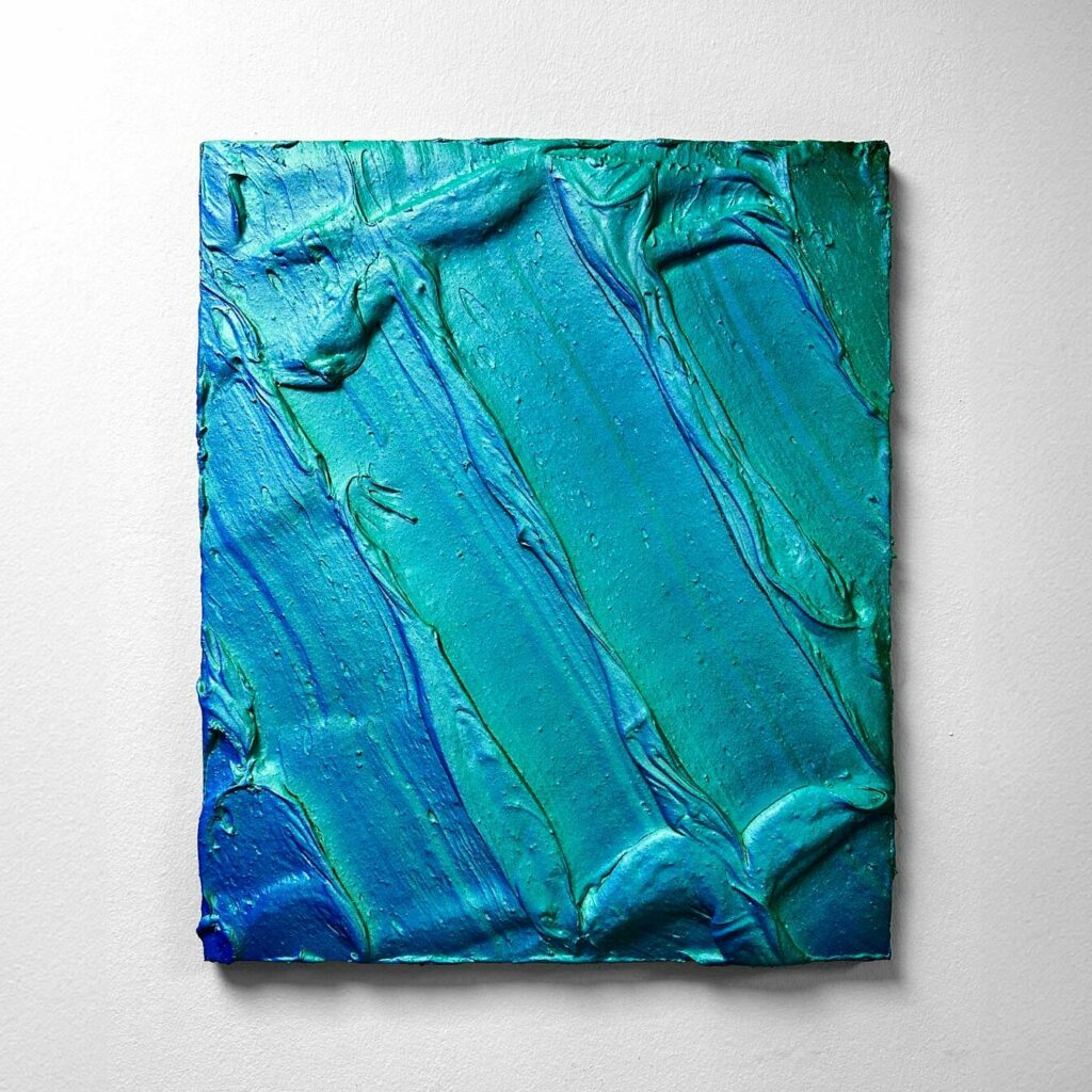 Physically, my artworks come to life on poplar wood panels that undergo repeated cycles of treatment with varnishes. Then, pastes are created by mixing various chemical and natural elements, such as rock fragments, fillers, adhesive gels, and other materials. These pastes are shaped and worked to form the compositions, which are then spray-painted with acrylic colors. Finally, each piece is finished with epoxy resin, which gives it extraordinary chromatic depth and durability.