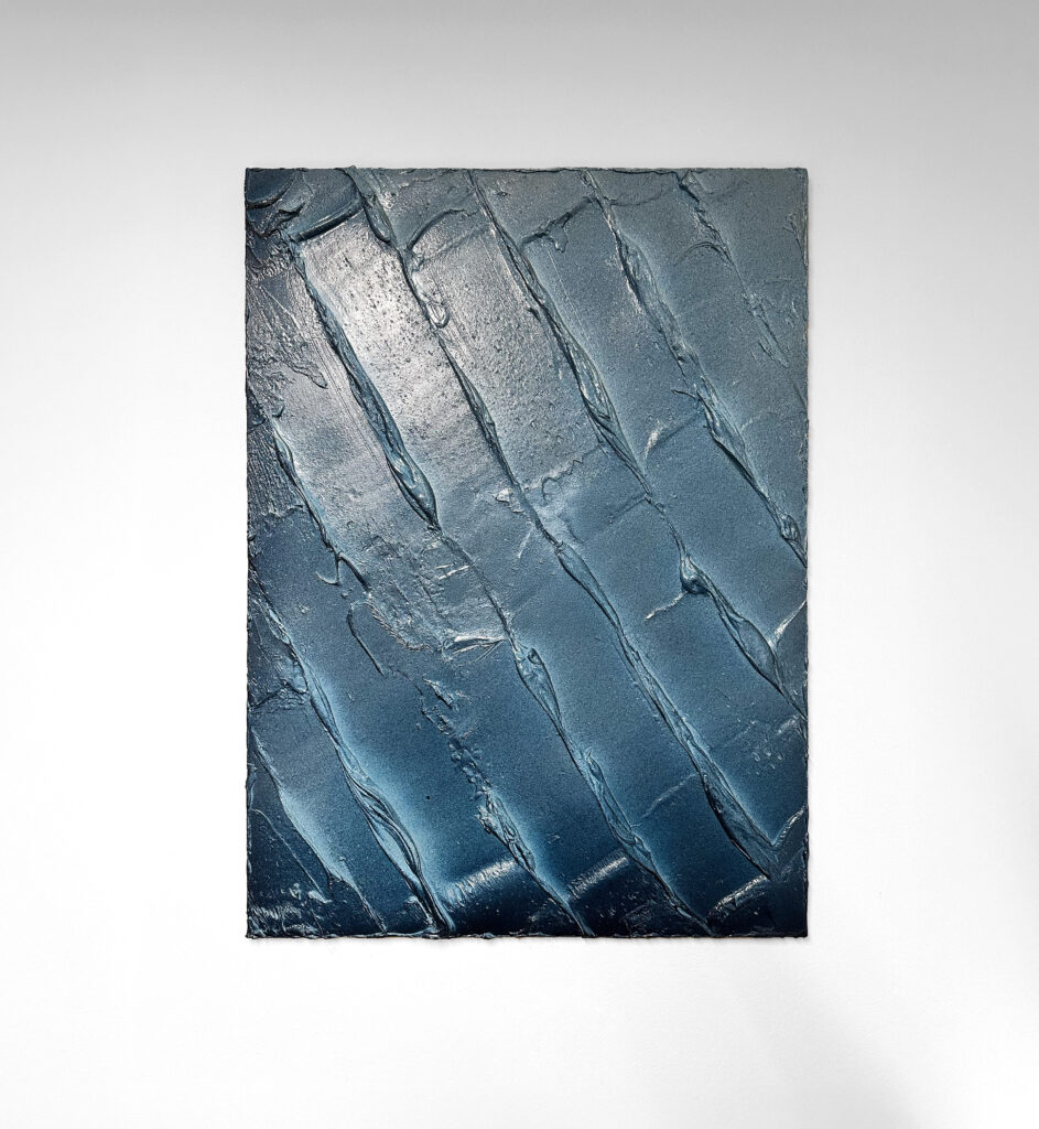 Physically, my artworks come to life on poplar wood panels that undergo repeated cycles of treatment with varnishes. Then, pastes are created by mixing various chemical and natural elements, such as rock fragments, fillers, adhesive gels, and other materials. These pastes are shaped and worked to form the compositions, which are then spray-painted with acrylic colors. Finally, each piece is finished with epoxy resin, which gives it extraordinary chromatic depth and durability.