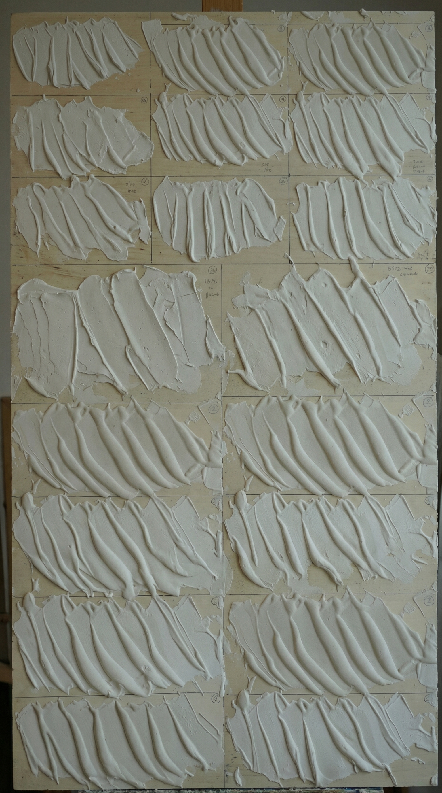 My love for manual work drives me to seek space and time to engage with it. I am fascinated by the art of mixing materials such as cement, glues, polyurethane foams, and gels, creating pastes with various textures and characteristics. My passion leads me to use a variety of everyday tools and to constantly experiment with new combinations of paints.